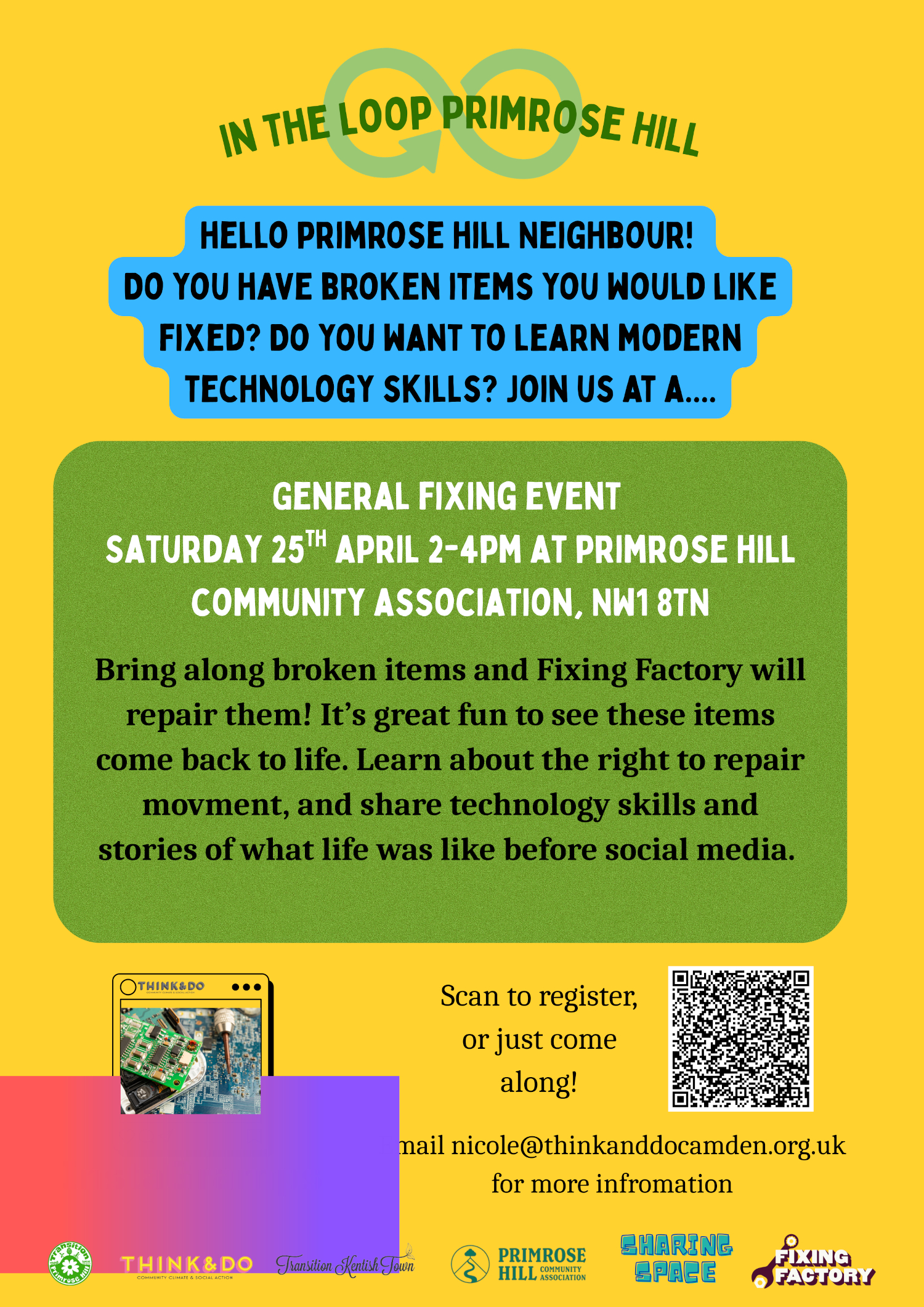 The first on Tuesday 23rd April is a People’s Assembly type event involving local people, local hubs like the PHCC and Community Library, and local high street traders, to explore local opportunities and needs. The second on Saturday 25th April is a hands on repair and reuse session with the Fixing Factory and local repair traders and upcycling enthusiasts. See posters below for details and to register to attend.