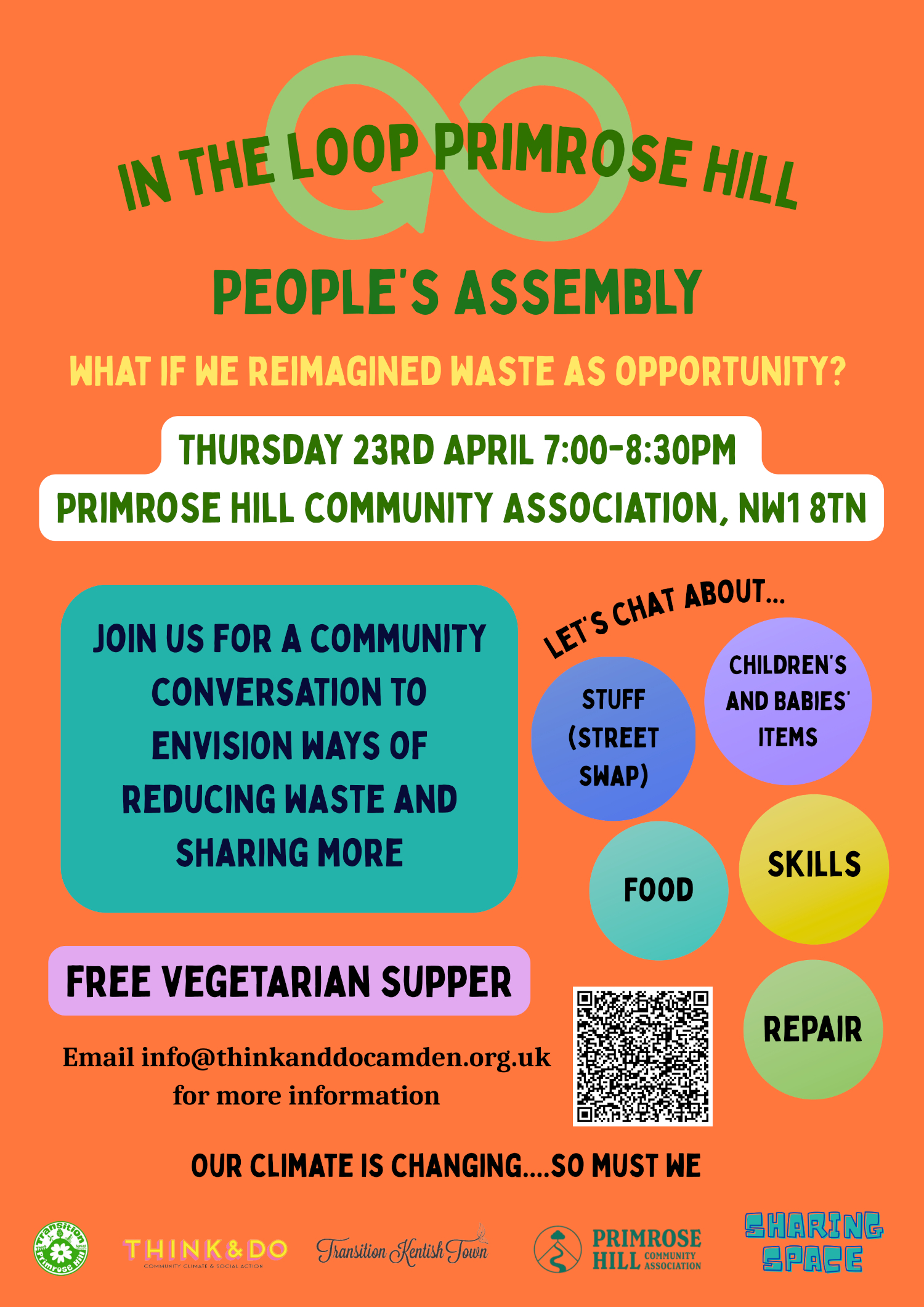 Two events designed to help us share ideas and explore the benefits of more circular local economies based around Swap n’ Share & Reuse n’ Repair. These have been organised with Think & Do Camden and Transition Primrose Hill, following the success of the Primrose Hill neighbourhood Street Swap pop up back in March.